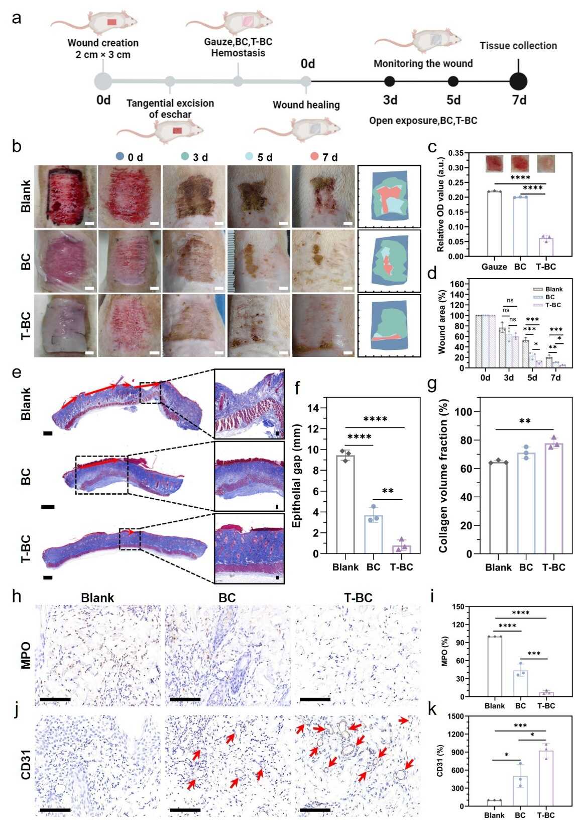 圖3 | 大鼠削痂創(chuàng)面模型中止血促愈效果評估