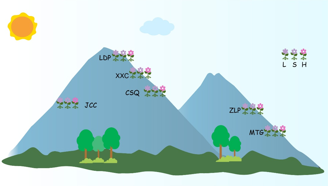 植物交配系統(tǒng)的演化是進(jìn)化生物學(xué)的核心議題之一。在開(kāi)花植物中,從異交(outcrossing)向自交(selfing)的轉(zhuǎn)變代表了一個(gè)主要演化趨勢(shì)。該這一過(guò)程通常被認(rèn)為由生態(tài)因素(如傳粉者缺乏)和繁殖保障機(jī)制共同驅(qū)動(dòng)。然而,現(xiàn)有的研究鮮少通過(guò)移栽實(shí)驗(yàn)來(lái)檢驗(yàn)生態(tài)因子與繁殖保障在交配系統(tǒng)演化中的作用。此外,少有研究從父本視角評(píng)估交配過(guò)程中個(gè)體對(duì)后代的遺傳貢獻(xiàn)。近日,華南植物園利用迎陽(yáng)報(bào)春(Primula oreodoxa)這一理想研究系統(tǒng),通過(guò)精巧的移栽實(shí)驗(yàn)揭示了這一過(guò)程的生態(tài)與遺傳機(jī)制。