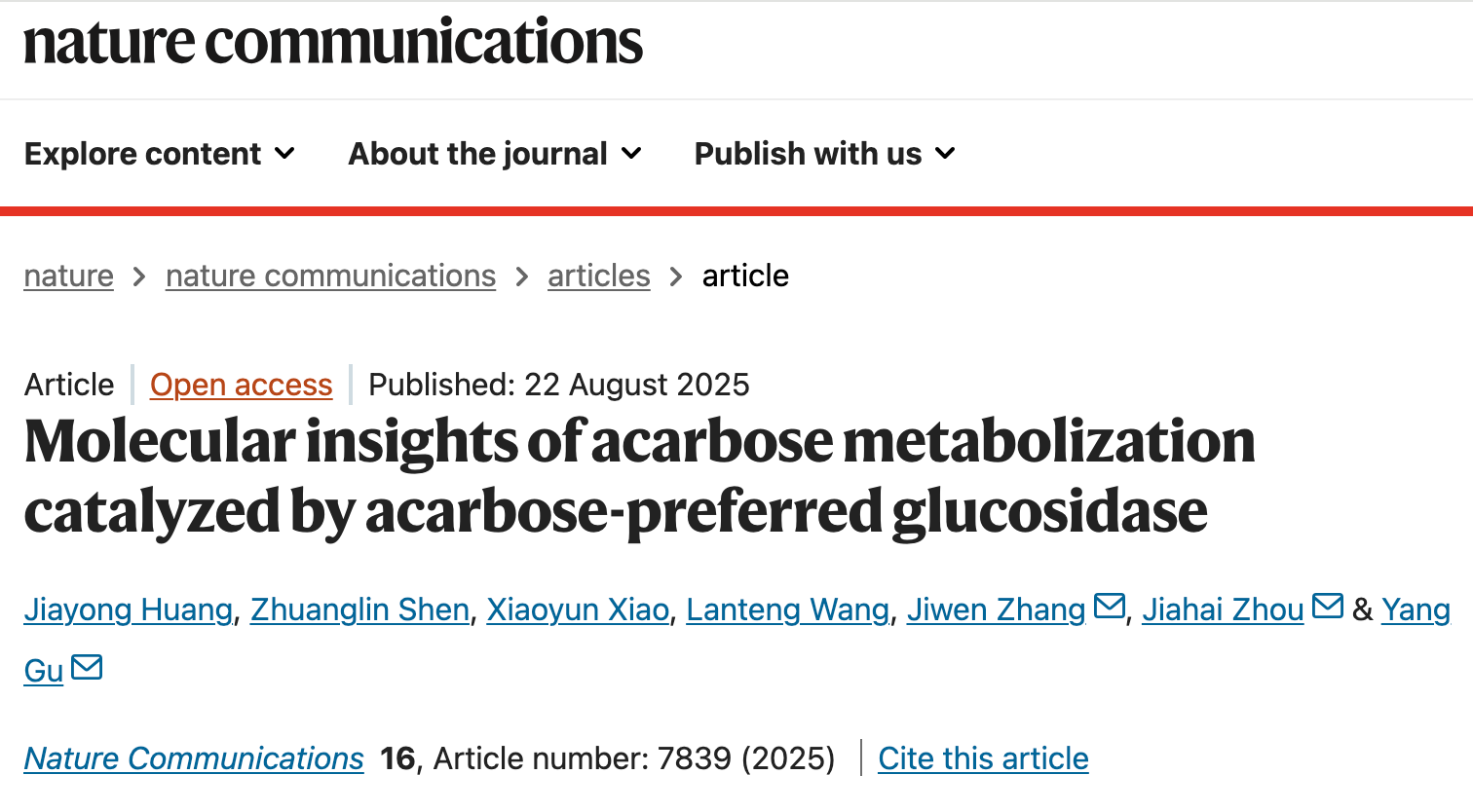 阿卡波糖是治療2型糖尿病的一線藥物,但其療效常被腸道細(xì)菌中的“阿卡波糖殺手”——阿卡波糖糖苷水解酶(Apg)破壞。近日,中國(guó)科學(xué)院深圳先進(jìn)技術(shù)研究院合成生物學(xué)研究所客座研究員/南京師范大學(xué)教授周佳海團(tuán)隊(duì)及其團(tuán)隊(duì)副研究員古陽(yáng),聯(lián)合西北農(nóng)林科技大學(xué)教授張繼文團(tuán)隊(duì)等,在Nature Communications發(fā)表題為“Molecular insights of acarbose metabolization catalyzed by acarbose-preferred glucosidase”的最新研究成果,利用X射線晶體學(xué)、計(jì)算模擬和生化實(shí)驗(yàn)結(jié)合,深入解析了Apg水解阿卡波糖的精細(xì)分子機(jī)制(圖1),為設(shè)計(jì)新一代抗降解、更高效的降糖藥物提供了關(guān)鍵的結(jié)構(gòu)藍(lán)圖。