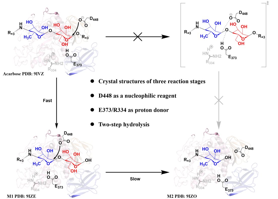 圖5. Apg催化阿卡波糖水解反應(yīng)的兩步過(guò)程