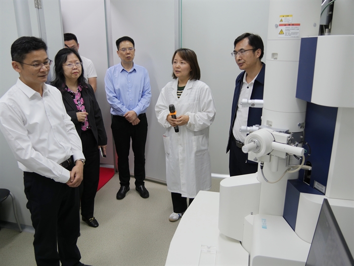 調(diào)研組一行還調(diào)研了顯微成像平臺(tái)和穩(wěn)定同位素平臺(tái),了解了透射電鏡等設(shè)備在測定功能性氨基酸、微量元素等關(guān)鍵營養(yǎng)素對豬肌肉、腸道、肝臟等組織細(xì)胞器形態(tài)學(xué)結(jié)構(gòu)變化中的作用。